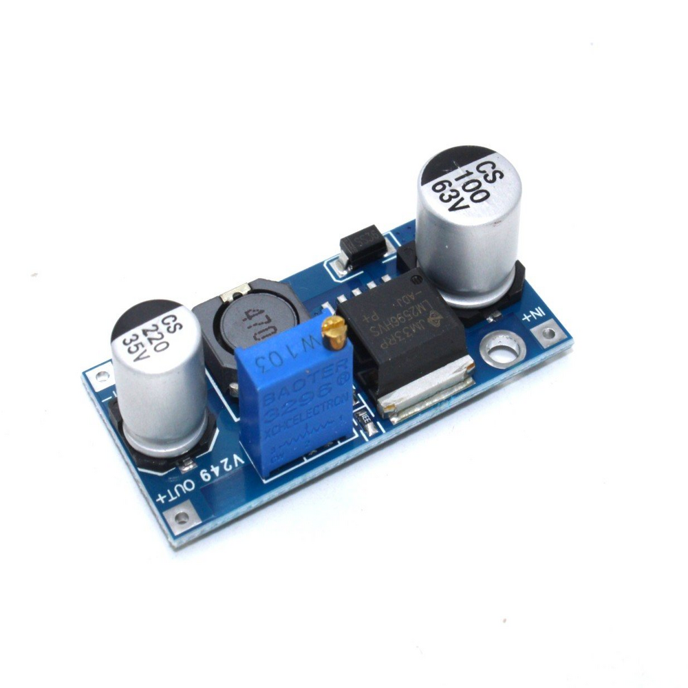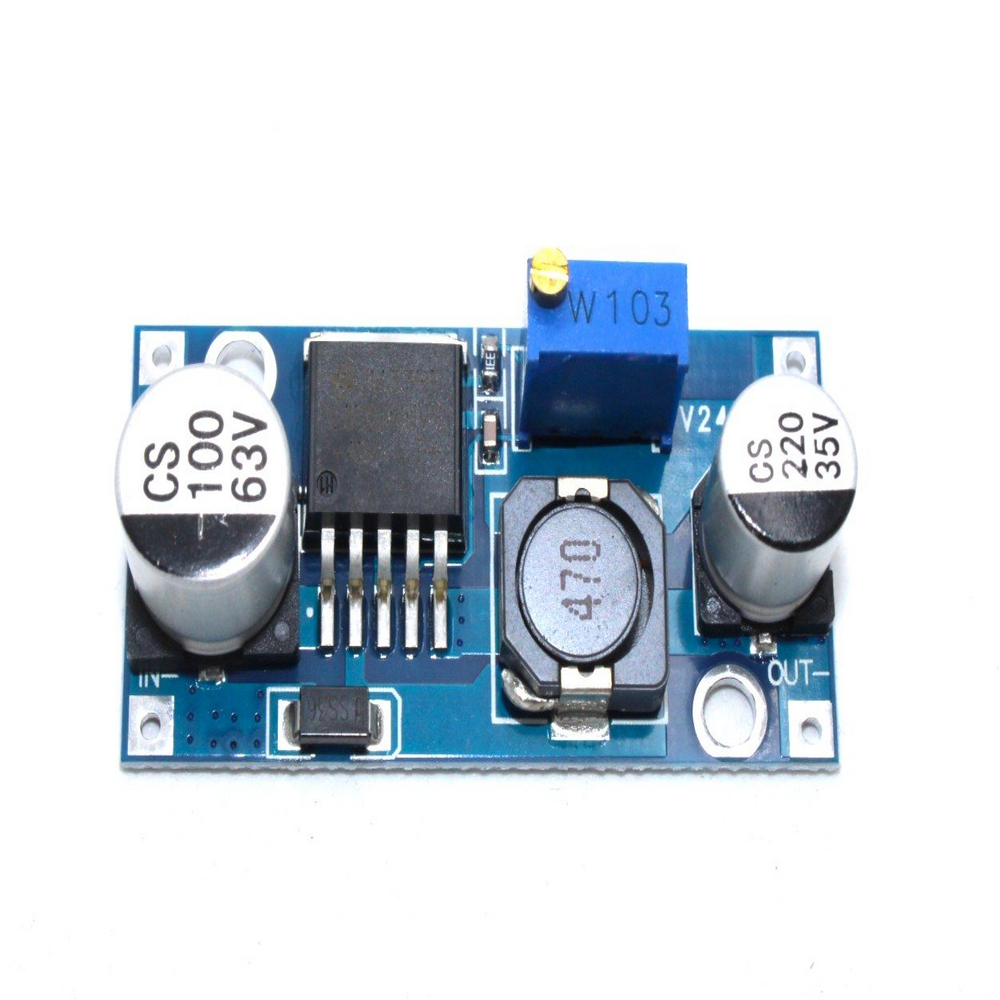 LM2596HVS module is a high input voltage version of the LM2596 Module. The LM2596HV module is a DC to DC converter buck converter module with an input voltage range of 4.5 volts to 50 volts and an output of 3 volts to 40 volts. This output is variable and can be varied using the on-board multi-turn potentiometer.